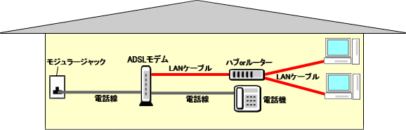 - パソコン1台の場合は、下図のハブorルータが不要です。